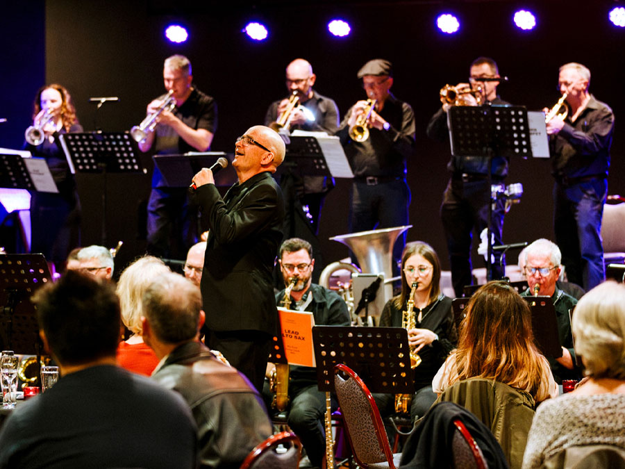 Josh Pyke performing in the banquet room