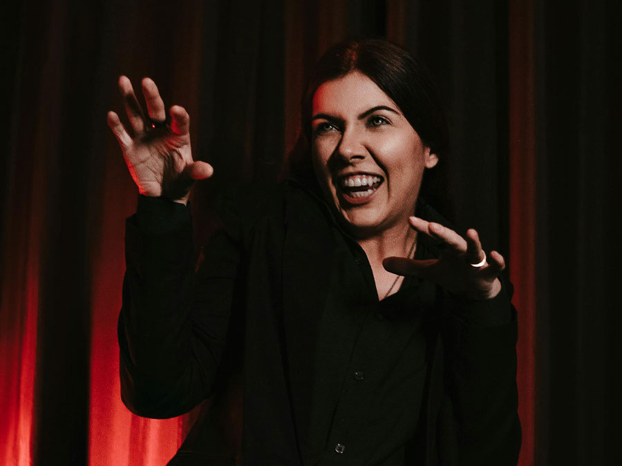 a palce-holder image of a person on stage holding a microphone